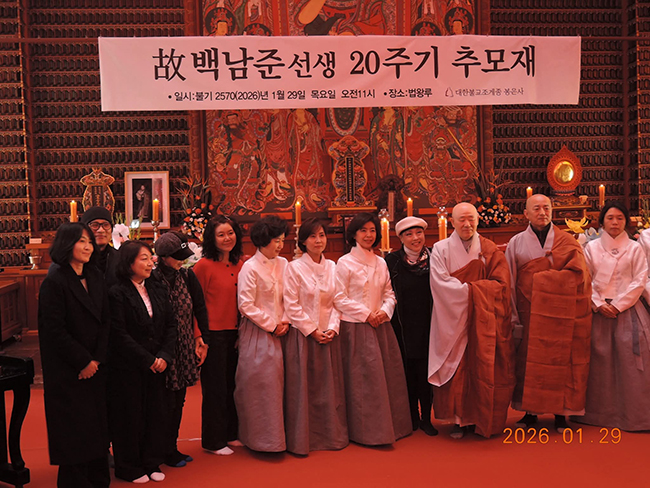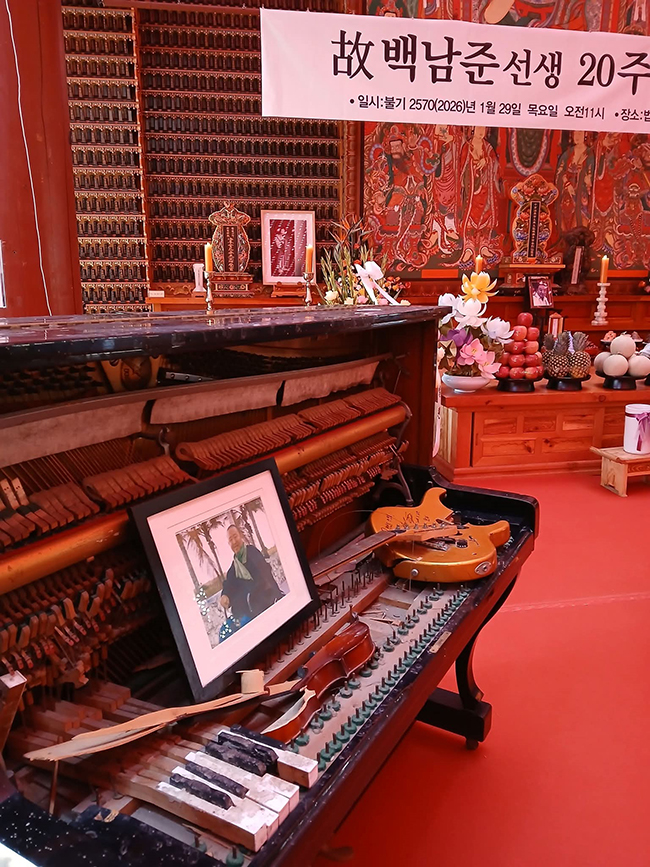 지난 1월 29일 11시 백남준(1932-2006) 20주기 추모재가 봉은사 법왕루에서 있었다. 행사는 참여하지 못했고 김형순 기자의 사진으로 대신한다. 오후 2시부터 백남준 아트센터에서 추모행사, 김은준 〈시퀀셜〉, 권병준 〈유령극단×로봇K-156:다시 켜진 회로〉가 있었다. 행사에는 많은 참석자들로 붐볐고 AI 로봇오페라 ‘권병준, 김은준, 그리고 <로봇 KI -456>’을 공연을 관람했다.