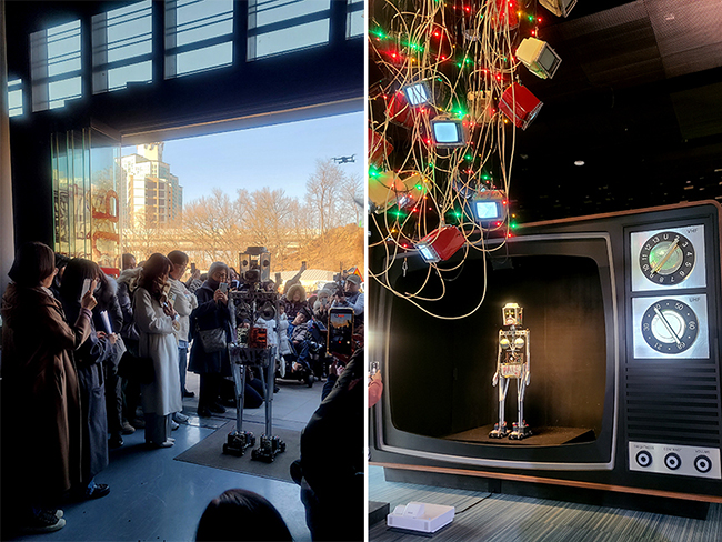 행사의 하이라이트는 60년 만에 다시 걷는 〈로봇 K-456> 와 AI와 만남이다. 이번 공연은 백남준이 1965년 뉴욕에서 선보였던 역사적 퍼포먼스 《로봇오페라》를 모티브로 기획됐다. 공연의 중심에는 복원 과정을 거쳐 다시 숨을 쉬게 된 〈로봇 K-456〉이 있었다. 1964년 일본 엔지니어들과 공동 제작했던 이 원격 조정 로봇은, 동시대 예술가 권병준·김은준의 연주와 어우러져 현대적 언어로 재탄생했다.